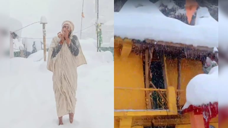 उत्तरकाशी के गंगोत्री और यमुनोत्री धाम में लगभग एक फीट बर्फ जमा होने से निचले इलाकों में भी ठंड बढ़ गई है. बर्फबारी के कारण प्रदेश के अन्य हिस्सों में भी तापमान में गिरावट दर्ज की गई है. इसी बीच यमुनोत्री धाम से कई विजुअल्स आ रहे हैं,जो सोशल मीडिया पर काफी वायरल हो रहे हैं. एक वीडियो में देखा जा सकता है कि एक पुजारी बर्फबारी के बीच शंख बजा रहा है. इस वीडियो को सोशल मीडिया के कई प्लेटफॉर्म पर धड़ल्ले से शेयर किया जा रहा है.