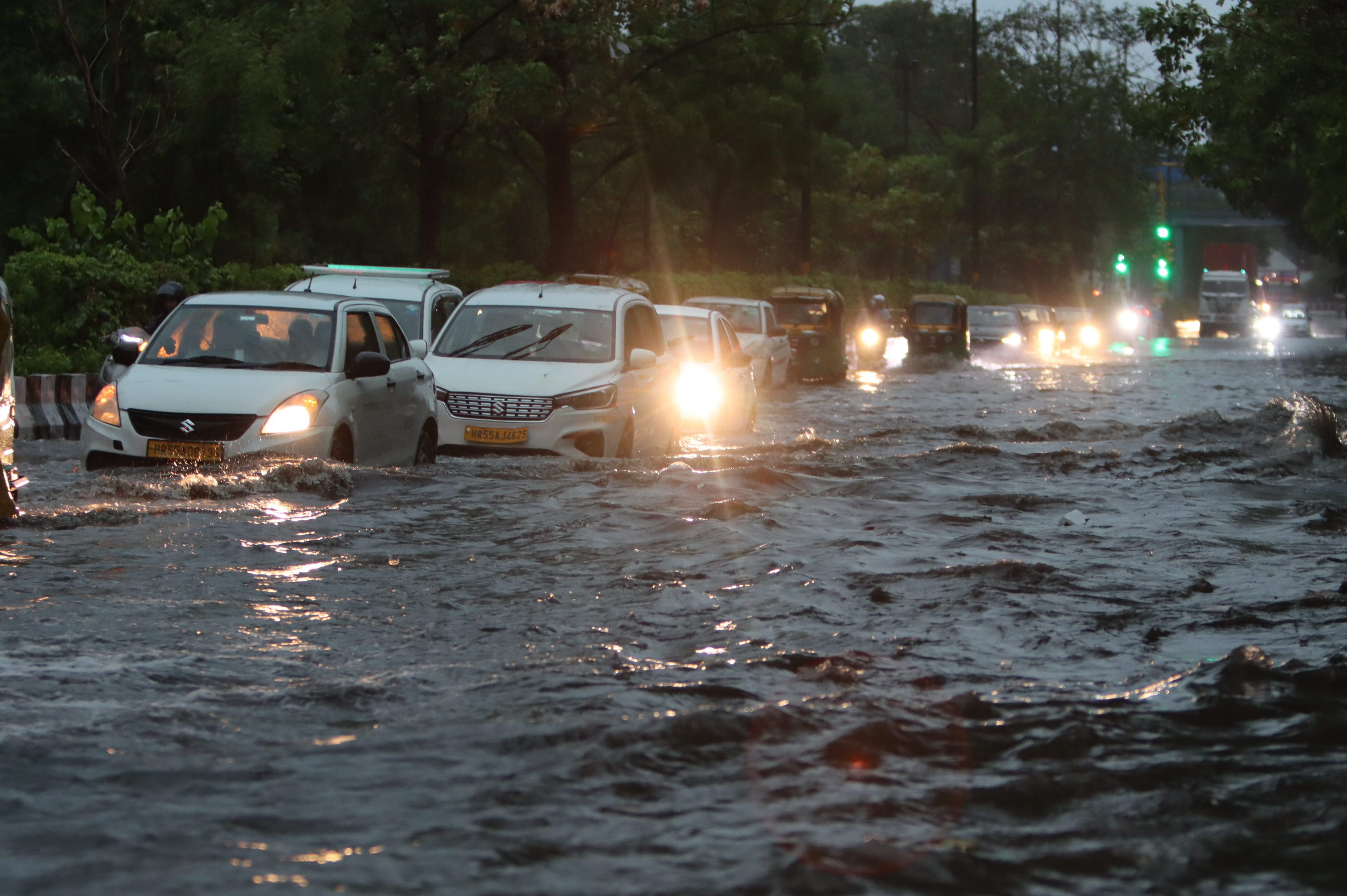 दिल्ली-NCR में हुई भारी बारिश से सड़कों में भारी जलभराव हो गया. शहर में कई जगहों पर पेड़ गिर गए. जिससे यातायात हुआ प्रभावित.