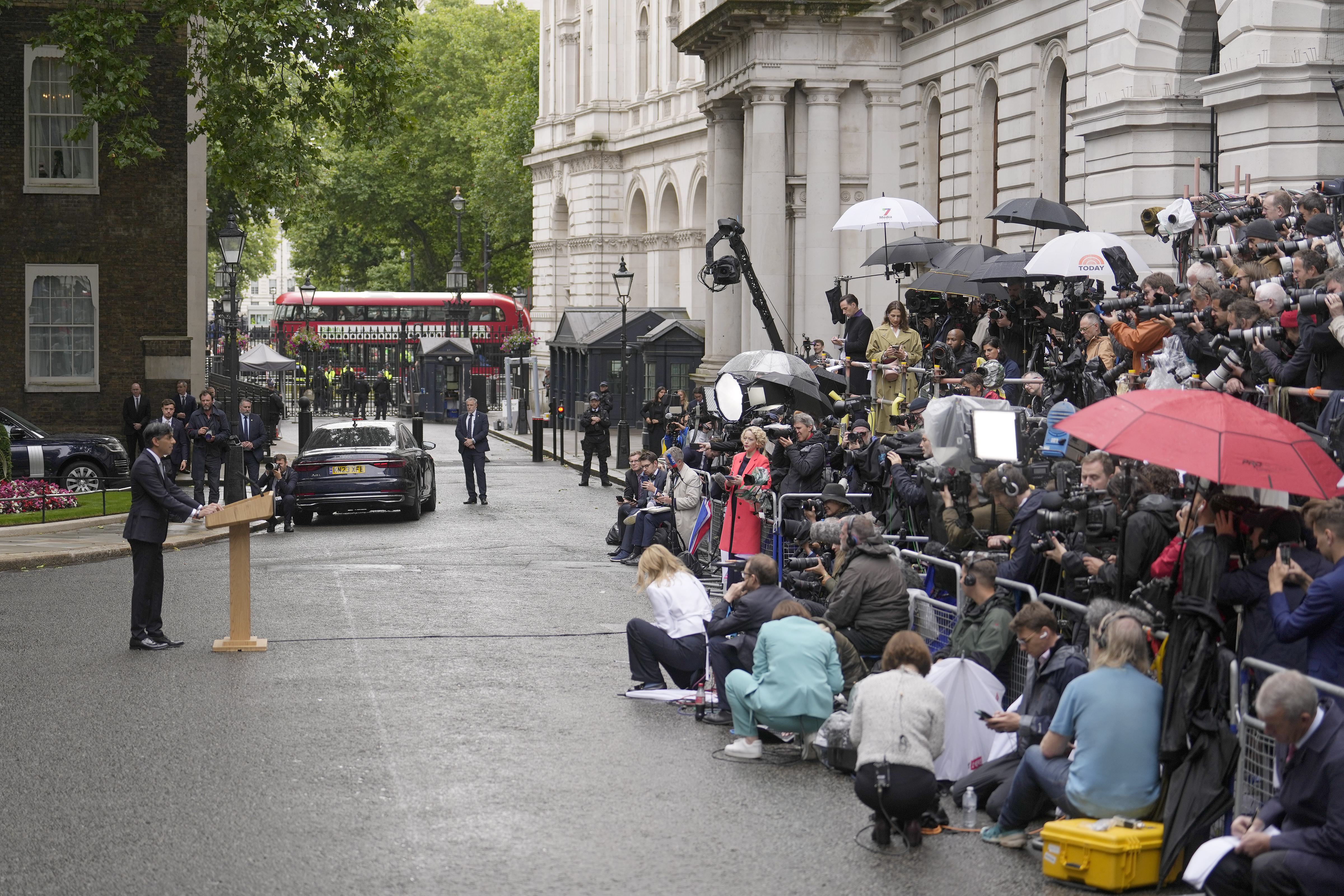 डाउनिंग स्ट्रीट में प्रधानमंत्री कार्यालय के सामने दिए गए एक संक्षिप्त भाषण में सुनक ने जनता को संबोधित करते हुए कहा,"मैंने इस काम के लिए अपना सब कुछ दिया है,लेकिन आपने यूनाइटेड किंगडम की सरकार को बदलने का जनादेश दिया है,आपका निर्णय ही मायने रखता है."