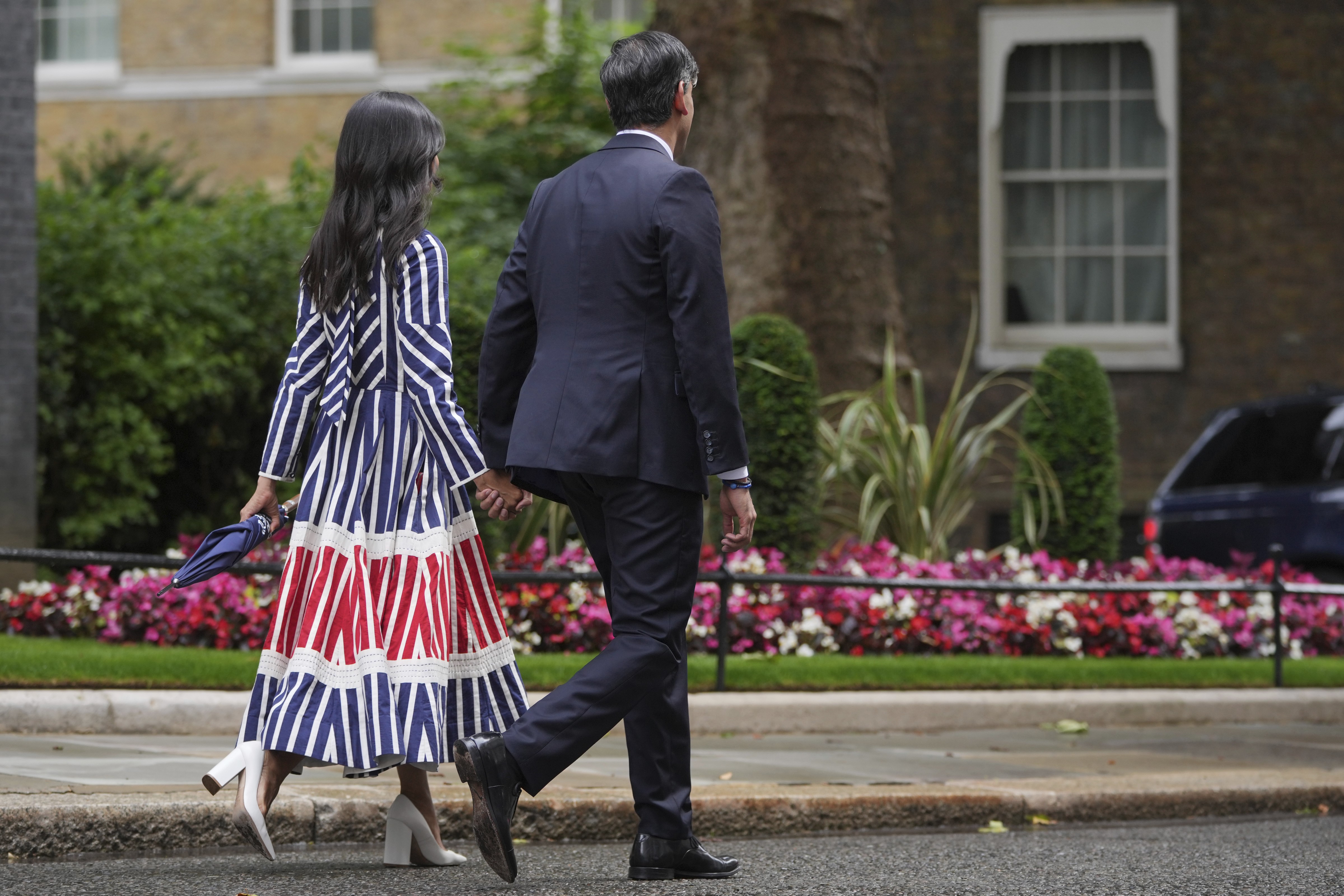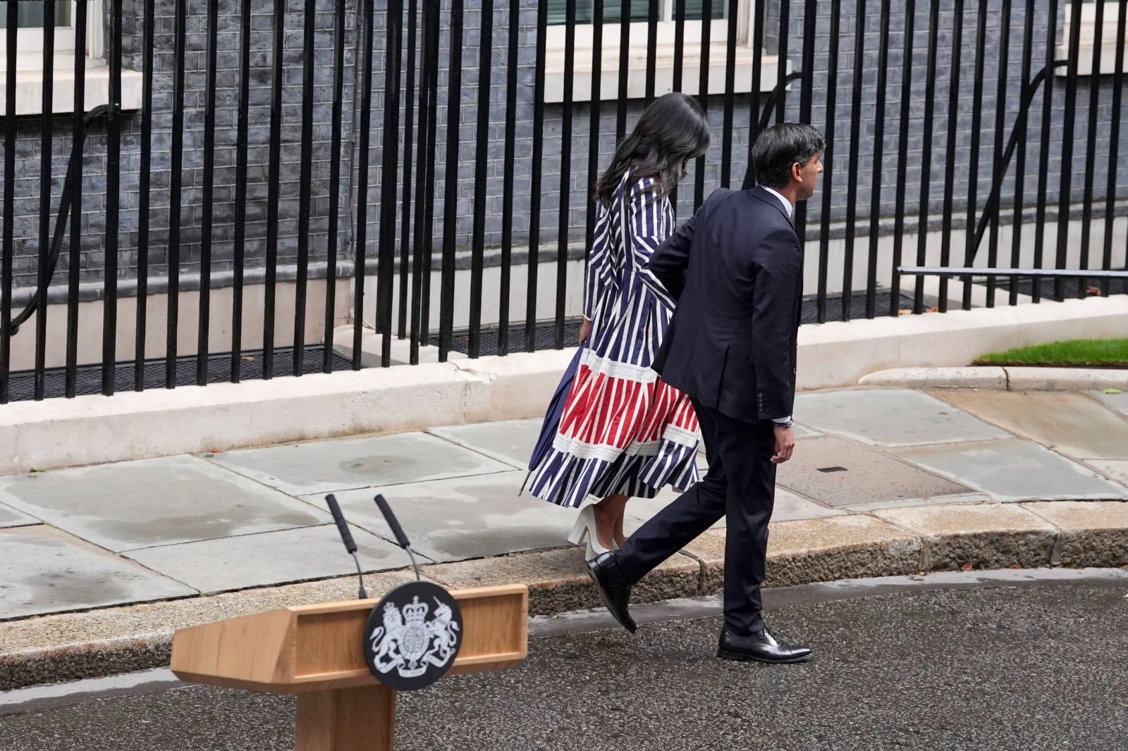 ब्रिटेन के आम चुनाव में मिली बड़ी हार के बाद प्रधानमंत्री ऋषि सुनक ने शुक्रवार को अपने पद से इस्तीफा दे दिया. वो जल्द ही कंजर्वेटिव नेता का पद भी छोड़ देंगे. इस बीच सुनक के ब्रिटेन के पीएम के सरकारी आवास 10 डाउनिंग स्ट्रीट छोड़ने की भावुक तस्वीरें भी सामने आयी हैं,जहां वो हार के बाद प्रेस कॉन्फ्रेंस कर रहे हैं और पत्नी अक्षता मूर्ति उनका इंतजार कर रही हैं,फिर दोनों एक-दूसरे का हाथ पकड़कर पीएम आवास छोड़कर चले जाते हैं.