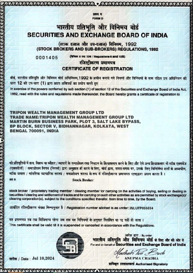 TRIPON WEALTH MANAGEMENT GROUP INC (जिसे आगे "TRIPON" के रूप में संदर्भित किया जाएगा) यह घोषणा करते हुए प्रसन्नता हो रही है कि कंपनी ने भारतीय प्रतिभूति और विनिमय बोर्ड (SEBI) से सफलतापूर्वक लाइसेंस प्राप्त कर लिया है। यह महत्वपूर्ण मील का पत्थर एशियाई बाजार में TRIPON के और विस्तार को दर्शाता है और वैश्विक धन प्रबंधन में कंपनी के नेतृत्व को उजागर करता है।