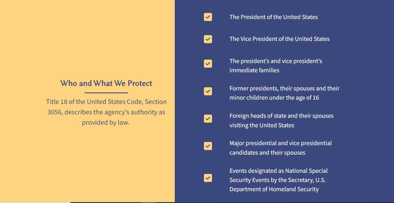 सीक्रेट सर्विस पर संयुक्त राज्य अमेरिका के राष्ट्रपति और उपराष्ट्रपति की सुरक्षा का है जिम्मा