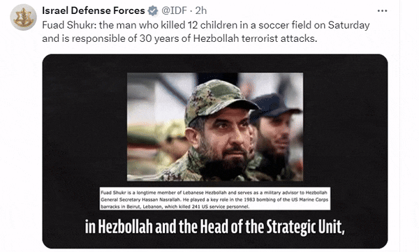 Shukr has directed Hezbollah's attacks on the State of Israel since October 8th,and he was the commander responsible for the murder of the 12 children in… pic.twitter.com/1poIm4XSVm