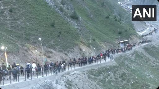 #WATCH | J&K: A large number of pilgrims en route from Baltal to Holy Amarnath cave. pic.twitter.com/u9hdwn7c95