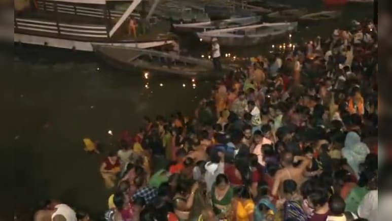 #WATCH | UP: A large crowd of devotees witnessed in Varanasi to take holy dip in Ganga River,on the occasion of Kartik Purnima pic.twitter.com/deI3oetXCN