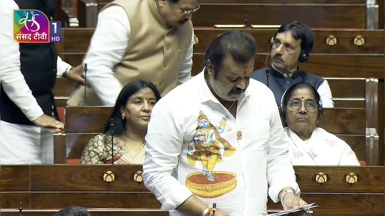केंद्रीय मंत्री और मलयालम फिल्म सुपरस्टार सुरेश गोपी आज राज्यसभा में एक अनोखी शर्ट पहनकर पहुंचे. उनकी सफेद रंग की शर्ट के एक हिस्से पर भगवान कृष्ण की तस्वीर बनी हुई थी. जब वोराज्यसभा में आए तो हर किसी की नजरें उनकी शर्ट टिक गई. सुरेश गोपी पहले ऐसे बीजेपी नेता हैं जिन्होंने केरल से लोकसभा सीट जीती है. उन्होंने त्रिशूर सीट से लोकसभा चुनाव लड़ा था. सुरेश गोपी एक भारतीय अभिनेता,गायक,टेलीविजन प्रेसेंटर और राजनीतिज्ञ हैं. जो वर्तमान में पेट्रोलियम और प्राकृतिक गैस राज्य मंत्री और जून 2024 से पर्यटन मंत्री के रूप में कार्यरत हैं.