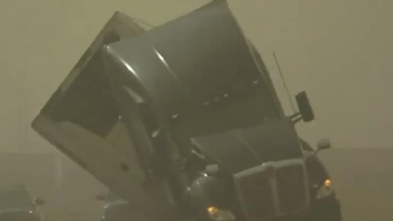 अमेरिका में धूल के बवंडर में ट्रक का ही पलट दिया...