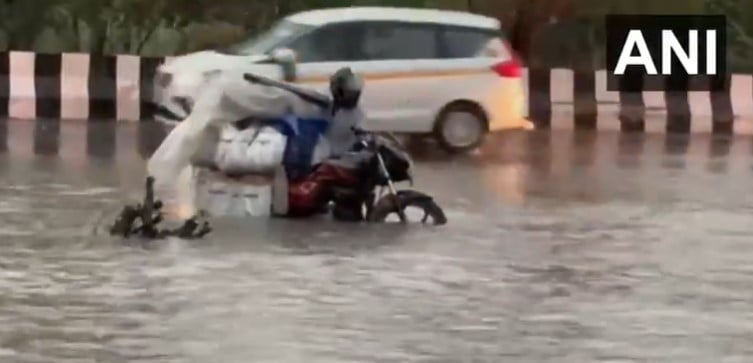 #WATCH | Waterlogging witnessed at several parts of Delhi following heavy rain