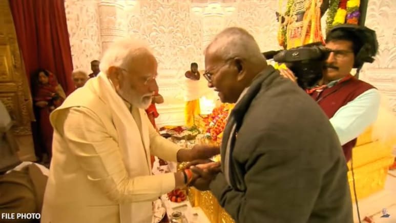 पीएम मोदी के साथ राम मंदिर तीर्थ क्षेत्र के ट्रस्टी कामेश्वर चौपाल (फाइल फोटो)