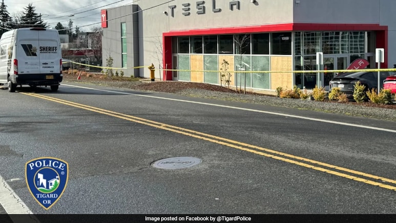 टेस्ला के शो रूम के बाहर फायरिंग