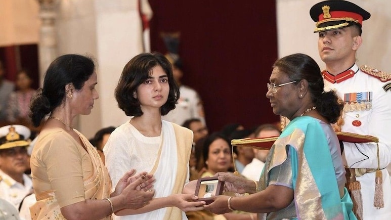 Kirti Chakra Award : कैप्टन अंशुमान सिंह के मरणोपरांत उनकी पत्नी स्मृति और मां मंजू सिंह ने कीर्ति चक्र राष्ट्रपति से लिया.