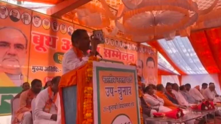 दरअसल कुंदरकी उपचुनाव में भाजपा ने ठाकुर रामवीर सिंह को अपना प्रत्यासी बनाया है और बूथ कार्यकर्ता सम्मेलन में बतौर मुख्य अतिथि प्रदेश अध्यक्ष चौधरी भूपेंद्र सिंह पहुँचे हुए थे.ये वीडियो भी उसी समय का है.वीडियो में कई मंत्रियों के साथ वो भी मंच पर बैठे हुए नजर आ रहे हैं.