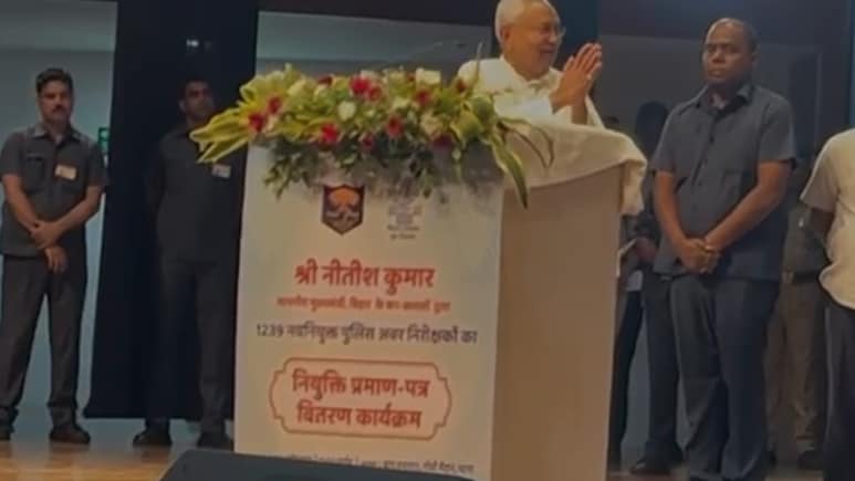 बिहार के मुख्यमंत्री नीतीश कुमार ने आज राज्य के डीजीपी के सामने हाथ जोड़े. दरअसल,मौक़ा था राज्य में नवनियुक्त 1239 पुलिस अवर निरीक्षकों को नियुक्ति पत्र समारोह का,जहां नीतीश कुमार ने अपने भाषण के दौरान राज्य के पुलिस महानिदेशक आलोक राज से जल्द से जल्द पुलिस विभाग में नियुक्ति प्रक्रिया को पूरा करने के लिए हाथ जोड़ लिये.