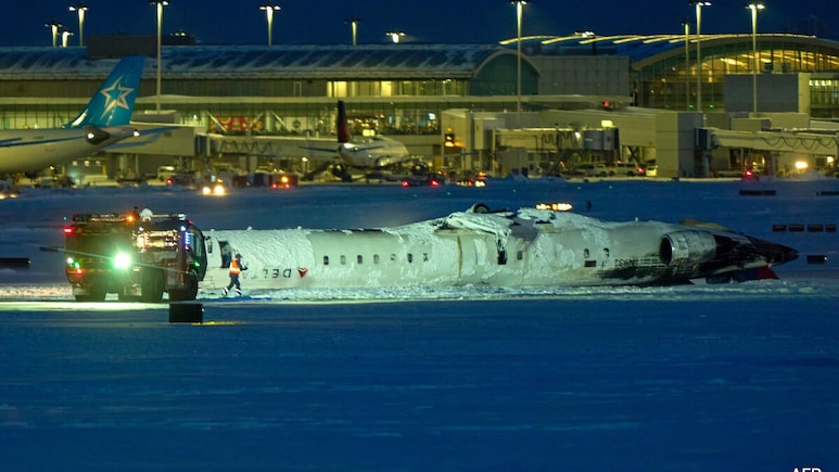 टोरंटो एयरपोर्ट पर लैंडिंग के दौरान फ्लाइट पलटने से हादसा.