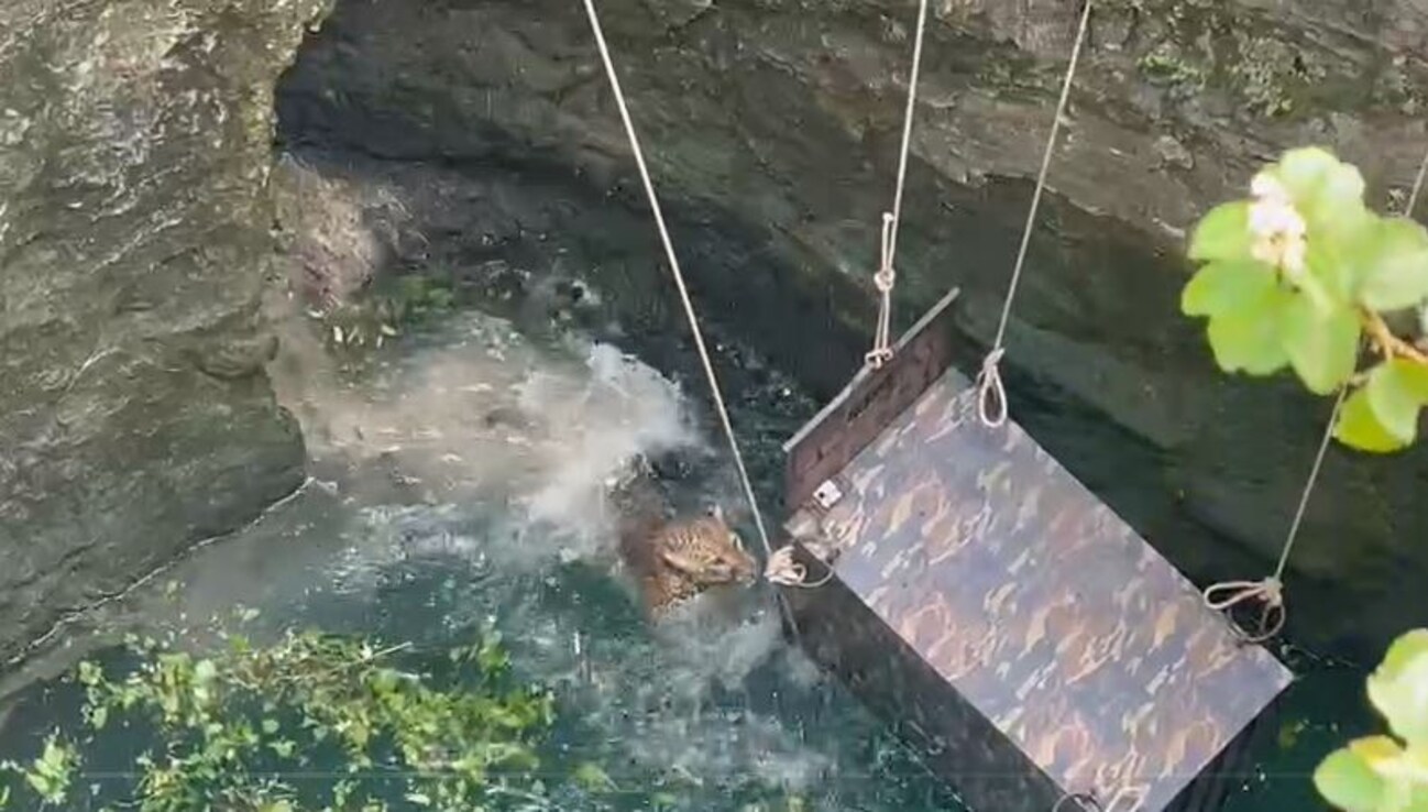 और इस तरह से कुएं में गिरे तेंदुए की जान बच गई. इस घटना का एक वीडियो सामने आया है. जिसमें कुएं के भीतर परेशान होता तेंदुआ दिखाई दे रहा है. जैसे ही उसे पिंजरा दिखता है वह तुरंत उसमें कूदकर अपनी जान बचा लेता है.