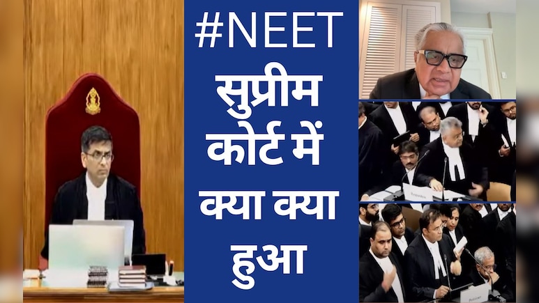 NEET पेपर लीक मामले को लेकर सुप्रीम कोर्ट में CJI की बेंच सुनवाई कर रही है. इस सुनवाई के दौरान CJI चंद्रचूड़ की बेंच 40 से ज्यादा याचिकाओं पर दलीलें सुन रहे हैं. मामले की सुनवाई के दौरान CJI चंद्रचूड़ ने कहा कि अगर 1 लाख 8 हजार छात्रों को दाखिला मिलता है तो बाकि 22 लाख छात्रों को दाखिला नहीं मिलता. ऐसे में इसका मतलब ये तो नहीं कि पूरी परीक्षा को रद्द कर दिया जाए? आइये जानते हैं कि इस सुनवाई के दौरान क्या कुछ दी गईं हैं दलीलें....