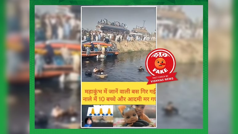 प्रयागराज महाकुंभ के बीच सोशल मीडिया पर वायरल एक वीडियो में एक बस को एक नाले में गिरा हुआ देखा जा सकता है. वीडियो में बस के आसपास काफी सारे लोग भी खड़े हैं. वीडियो को शेयर कर दावा किया जा रहा है कि यह बस प्रयागराज महाकुंभ जा रही थी और नाले में गिर गयी. पोस्ट में इस हादसे में 10 से ज़्यादा लोगों की मौत का भी दावा किया जा रहा है.