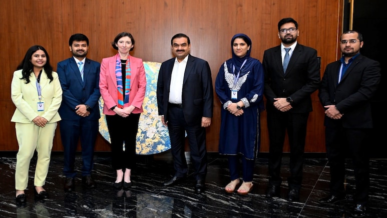 ब्रिटिश उच्चायुक्त लिंडी कैमरन (बाएं से तीसरी) ने अहमदाबाद में अदाणी समूह के चेयरमैन गौतम अदाणी (बीच में) के साथ शेवनिंग-अदाणी AI छात्रवृत्ति पुरस्कार विजेताओं से भी मुलाकात की...