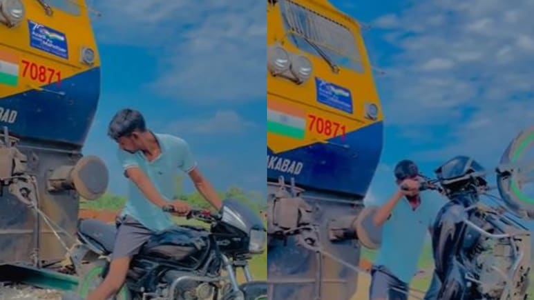 — NDTV India (@ndtvindia) September 12,2024जानकारी के मुताबिक यह वीडियो उत्तर प्रदेश के मुजफ्फरनगर का है. देवबंद से रुड़की के लिए बनी रेलवे लाइन पर खड़े खाली इंजन को बाइक से खींचने का यह वीडियो सोशल मीडिया पर वायरल हो रहा है. मुजफ्फरनगर पुलिस ने वायरल वीडियो में दिख रहे शख्स के खिलाफ एक्शन लेते हुए उसे गिरफ्तार कर लिया है और जेल भेज दिया है. आरपीएफ ने बताया कि देवबंद के मझोला के रहने वाले 20 साल के विपिन कुमार ने पंकज के नाम से इंस्टाग्राम पर आईडी बना रखी है.