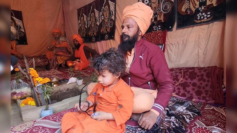 संगम की रेती पर दुनिया के सबसे बड़े धार्मिक और आध्यात्मिक मेले महाकुंभ की शुरुआत होने में सिर्फ चार दिन बचे हैं. वहीं इस मेले में आकर्षण का केंद्र रहने वाले अखाड़ों के साधु-संतों के शिविरों में भी भक्ति और ज्ञान की गंगा बहती हुई नजर आ रही है. अखाड़ों के शिविर में देशभर से बड़े-बड़े साधु-संत पहुंचे हुए हैं. सनातन और धर्म की रक्षा करने वाले अखाड़ों का वैभव इन दिनों मेला क्षेत्र में देखते ही बन रहा है. 13 अखाड़ों में देश के सबसे बड़े कहे जाने वाले शैव परंपरा के जूना अखाड़े के शिविर में इन दिनों एक तीन साल का छोटा संत चर्चा का विषय बना हुआ है. जी हां पंजाब के रहने वाले तीन साल के इस छोटे संत और बालक का नाम है श्रवण पुरी है.